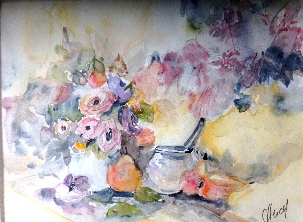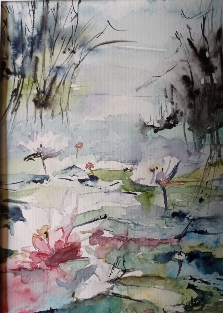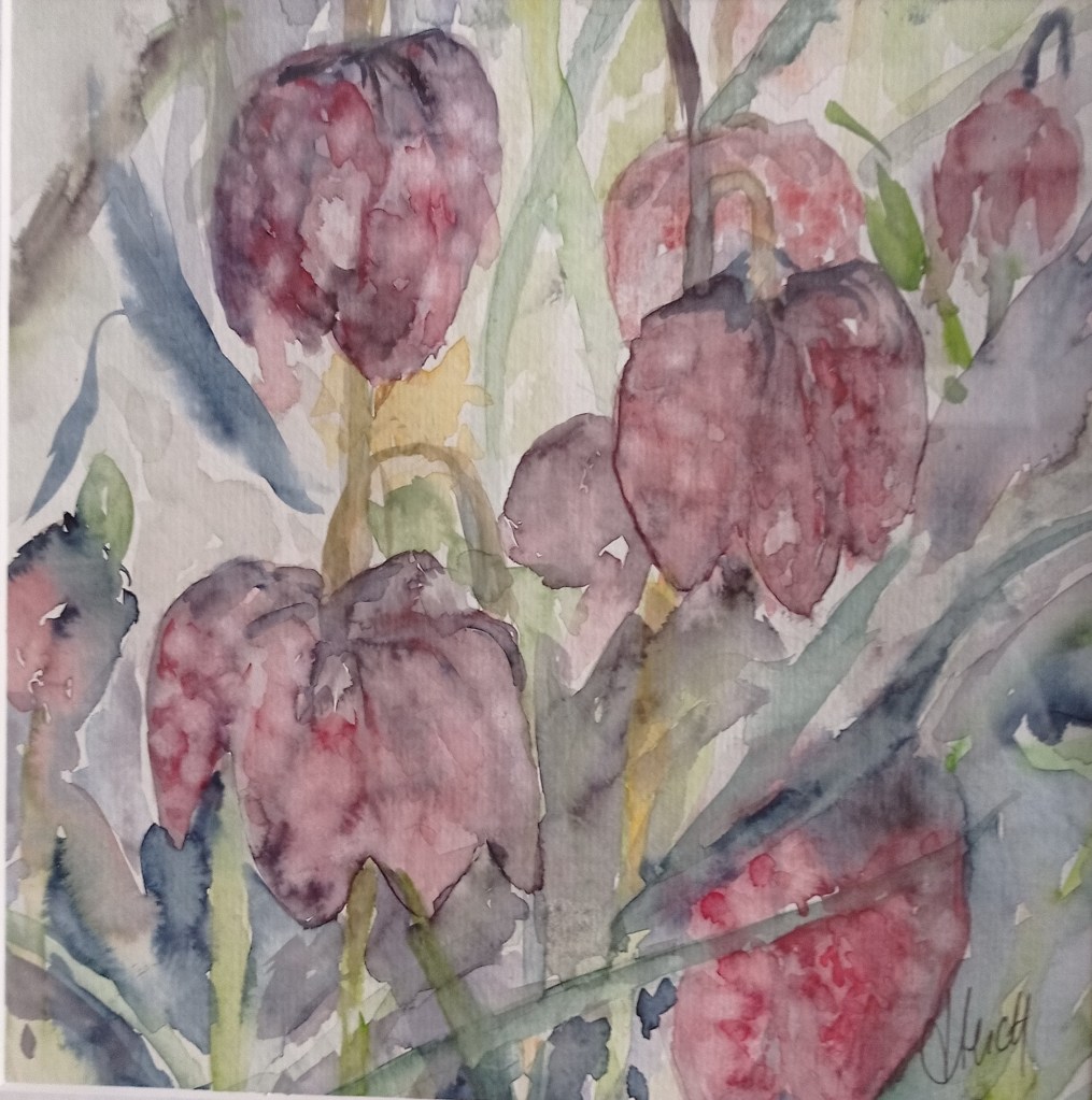 C’est différent de 2023, j’ai recherché sans utiliser d’artifices à créer des points blancs ( travail de retrait) pour les fritillaires, une approche plus japonisante avec les nénuphars émergeants de l’eau; faire un petit bouquet classique dans des tons chatoyants mais jamais de couleurs saturées.