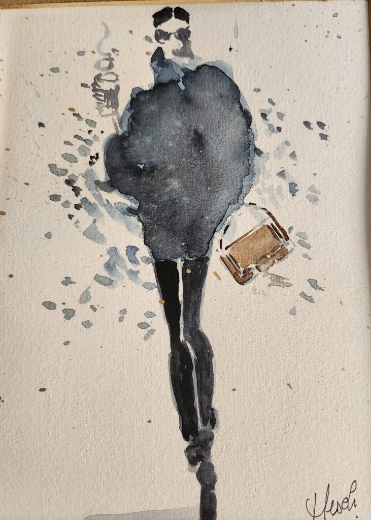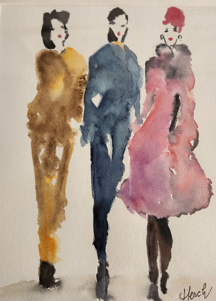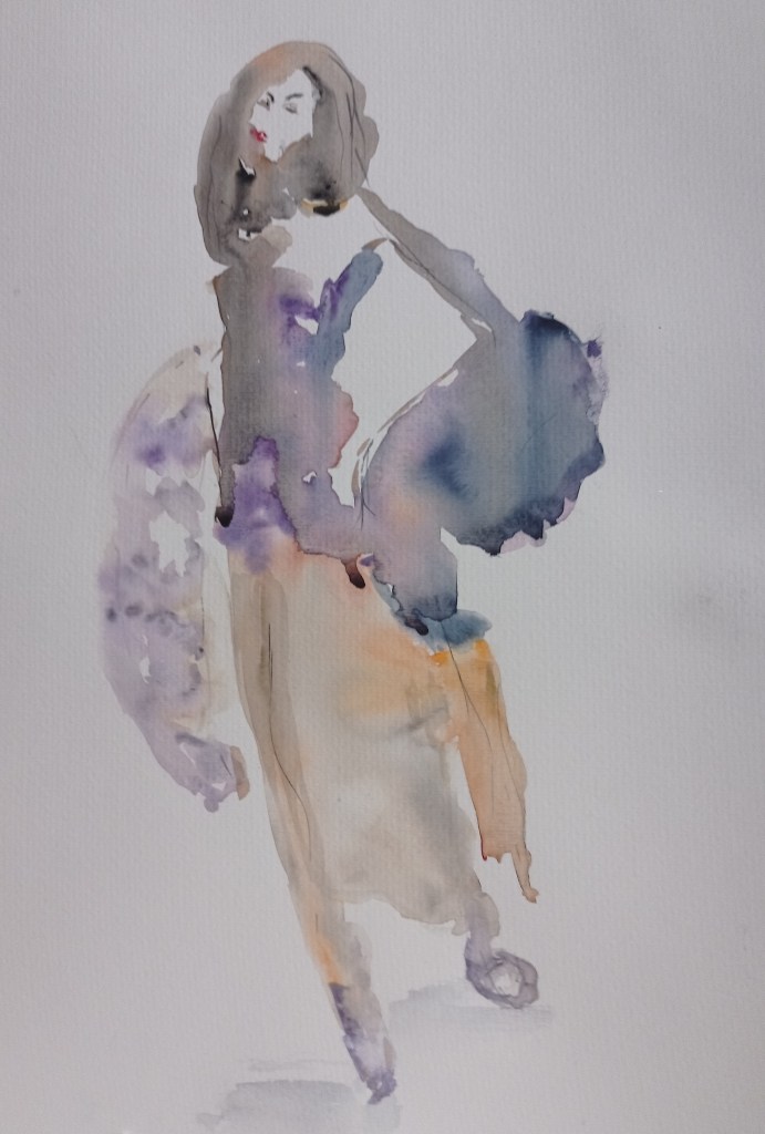 2025 : Les silhouettes, travail sur le mouvement, la légèreté, la mode… essai de spontané, laisser aller le pinceau….