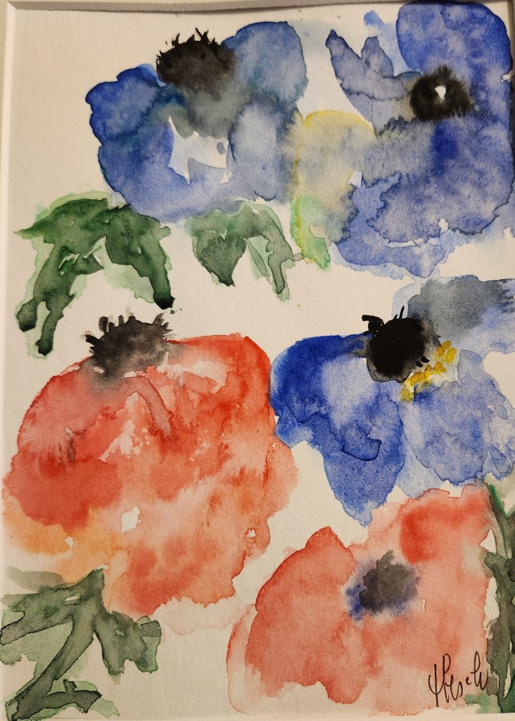 2026: exposition à Mornay Le printemps de Mornay: les fleurs Vase coloré de tulipes d’après photo 30X40 Bouquet de marguerites et bleuets sauvages 30X40 1ere version: vase aux iris 21X30 2eme version: vase aux iris 21X30 1ere version Anémones 21X30