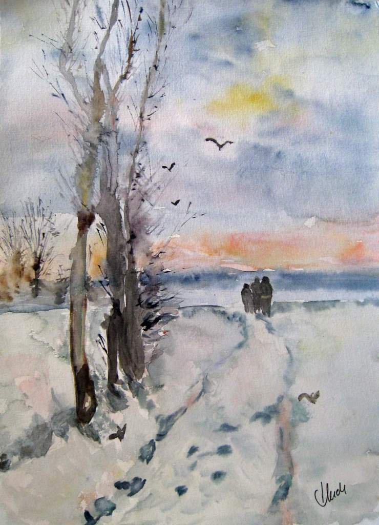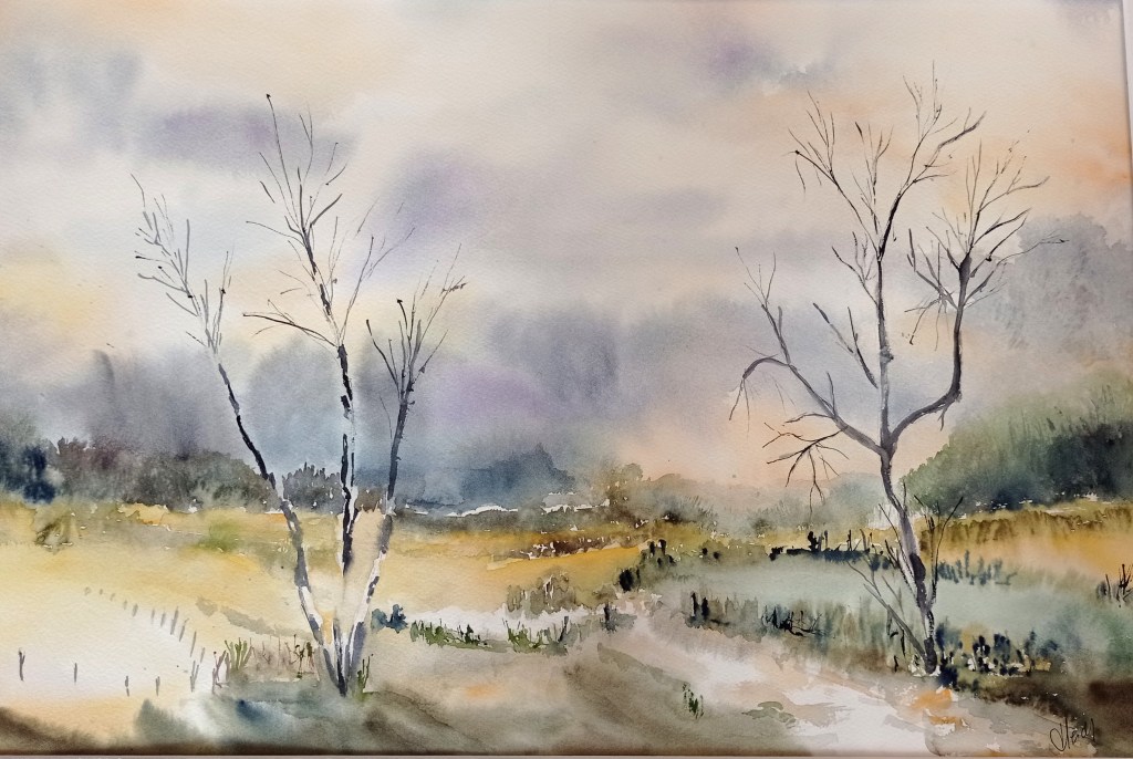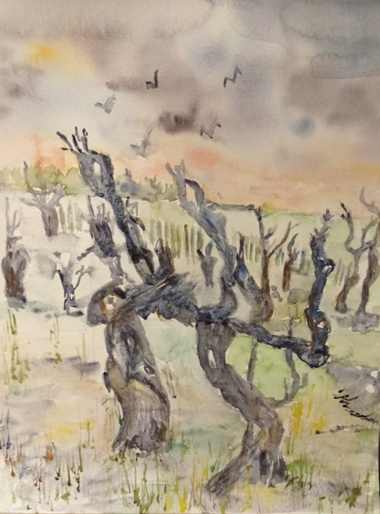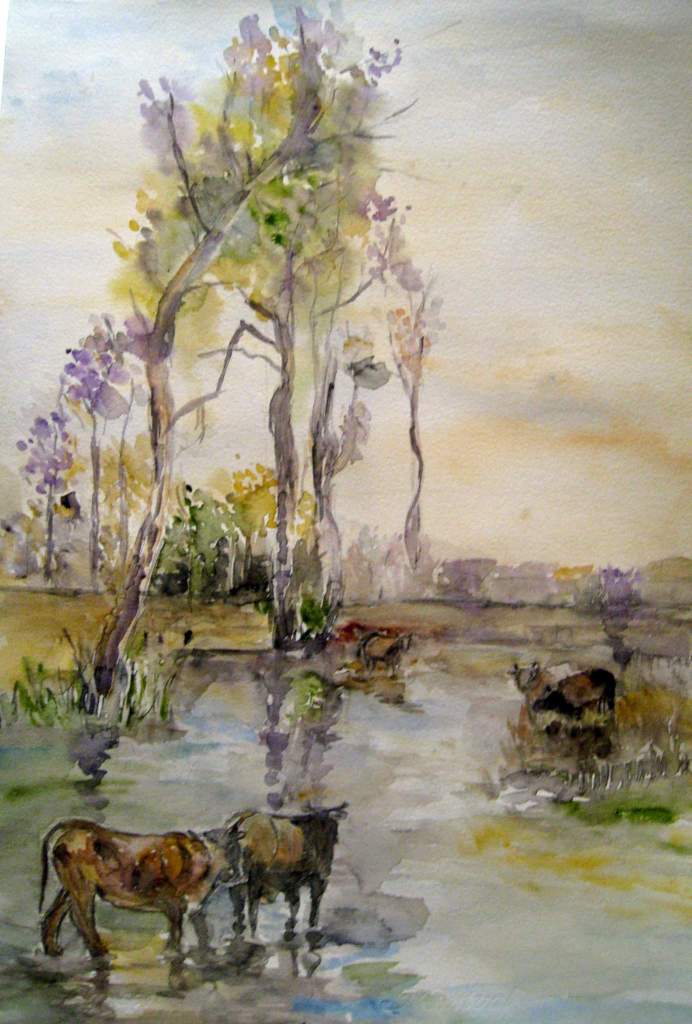La vie de Campagne : des paysages brumeux, des saisons l’hiver, l’automne et ses vignes, un escalier, des rives, des marais aux vaches, du linge qui sèche… recherche d’atmosphère, invitation à entrer dans le tableau